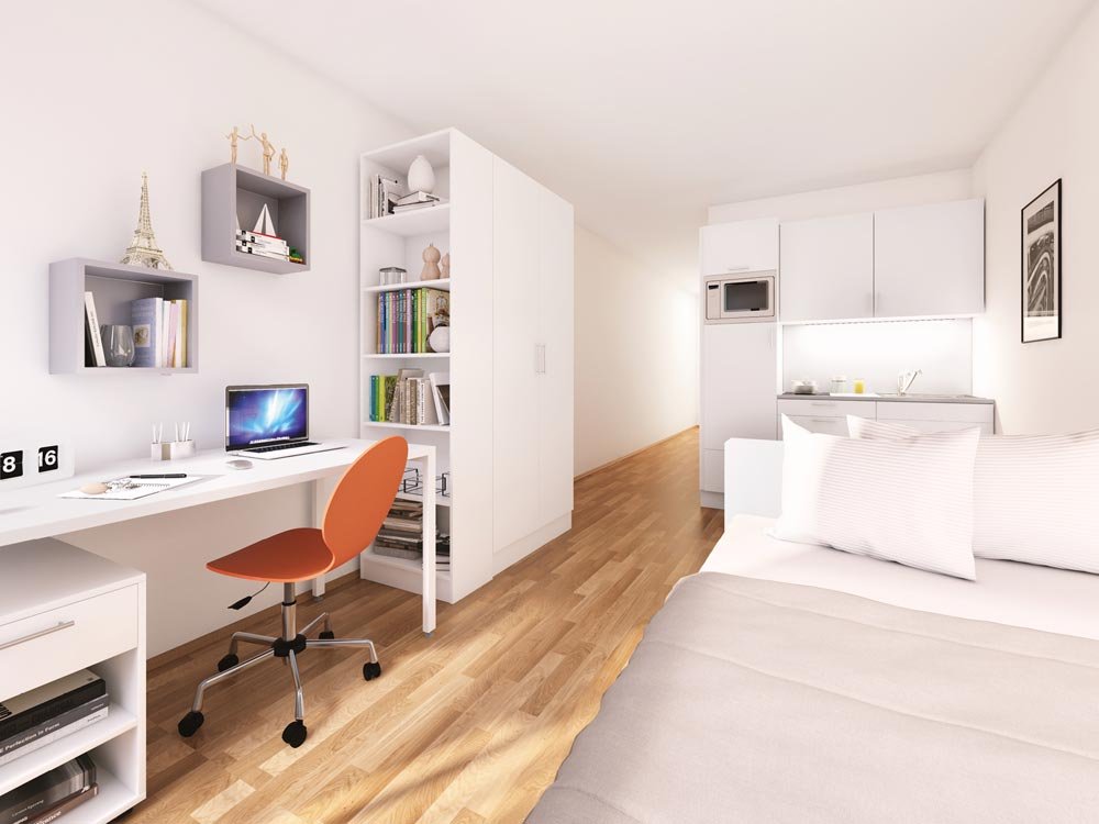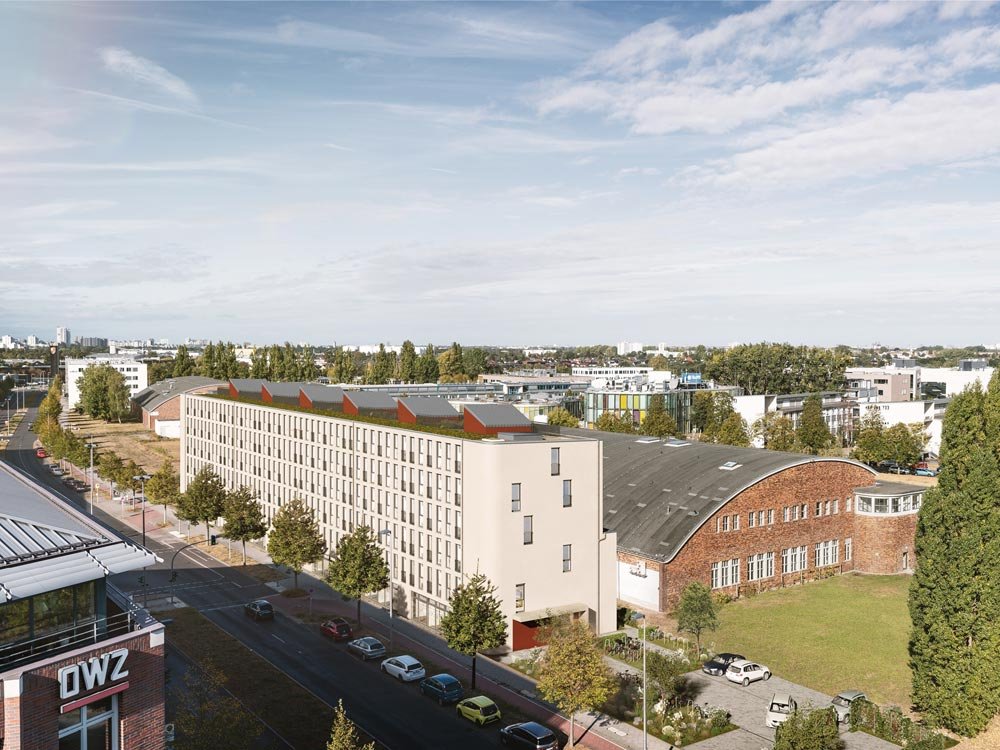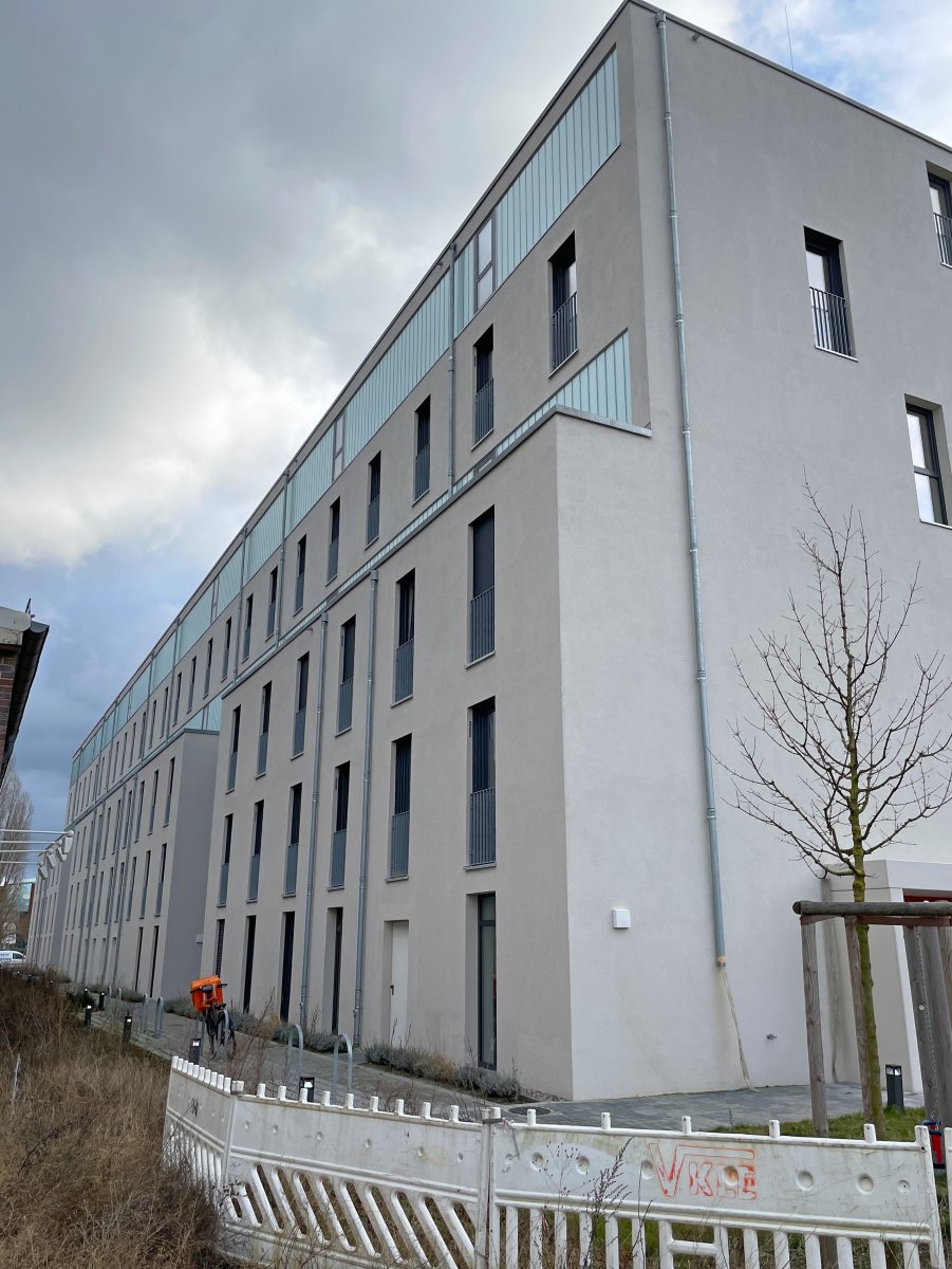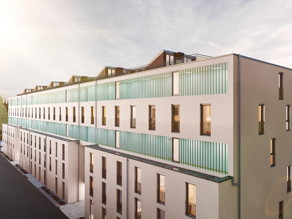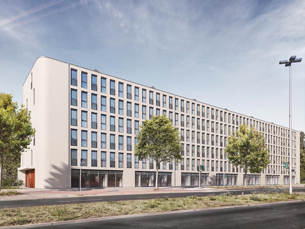 Errichtung eines fünfgeschossigen Wohn- und Geschäftshauses mit Tiefgarage in KfW-55-Bauweise auf ca. 2.300 m² Grundstücksfläche. Die Bruttogrundfläche beträgt rund 7.350 m². Das Projekt umfasst 80 Wohneinheiten (50 möblierte Mikro-Apartments, 30 Eigentumswohnungen) mit Wohnflächen von ca. 24–79 m² sowie Gewerbeflächen im Erd- und 1. Obergeschoss. Die Ausstattung der Wohnungen erfolgt in hochwertiger Ausführung mit u. a. Fußbodenheizung, Echtholzparkett, bodengleichen Duschen und teilweise Dachterrassen.